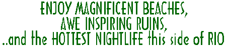 "This fascinating resort city claims some of the most spectacular beaches and clear waters in the world. The white, fine powder beaches run into the turquiose and emerald colored waters of the Caribbean, providing an unbelievable setting for water sports, or plain lounging beneath the warm Cancun sun".